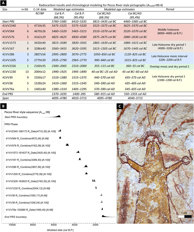 Долгое время «стиль реки Пекос» — монументальные полихромные росписи, изображающие антропоморфных существ, животных и геометрические символы — считался статичным. Учёные не могли определить, были ли эти изображения созданы за столетия или за тысячелетия. Прорыв произошёл с применением ультрасовременной технологии — масс‑спектрометрии с ускорителем (УМС). Этот метод позволил с беспрецедентной точностью датировать микроскопические частицы органического пигмента, оставшиеся на скалах.