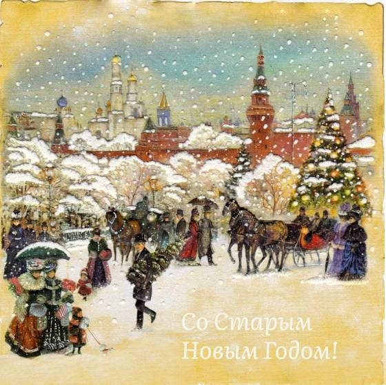 | «Только гостя проводили, На пороге он опять. Ведь таков у нас обычай — Дважды Новый год встречать! Пусть в два раза больше счастья Он с собою принесет, И не скупится на подарки Добрый Дедушка Мороз!».