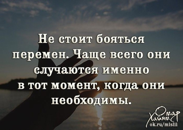 Не стоит бояться перемен. Чаще всего они случаются именно в тот момент, когда они необходимы.Конфуций