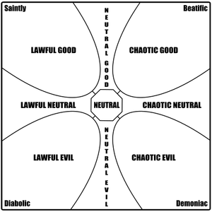 Может поможешь, есть описания персонажей к какой-то игре, там они даны с учетом разбивки по ведущим качествам, как то: злой, добрый, нейтральный, хаотичный, упорядоченный, и производным от их смешения. Игру название не скажу, не помню. Может, найдешь? biggrin wink