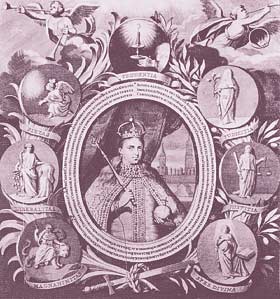 вполне оснащенном и с распущенными парусами. Впереди в шлюпке в виде бригантина с трубами и литаврами на носовой части оного ехал распорядитель праздника, главный начальник артиллерии граф Брюс". В 1724 году во время коронации Екатерины Брюс нес перед ней императорскую корону,а супруга Брюса была в числе пяти статс-дам, поддерживавших шлейф Екатерины. А в следующем году Брюсу пришлось в последний раз служить своему державному другу - он был главным распорядителем на похоронах Петра I.