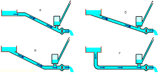 Гидротаранный насос или гидравлический таран (фр. bélier hydraulique, англ. hydraulic ram) — механическое устройство для подъёма воды на значительную (до нескольких десятков метров) высоту. Не требует для работы каких-либо внешних движителей, благодаря чему может быть весьма полезно в местности, где нет электроснабжения либо в местности малообжитой и редкопосещаемой. Энергию для работы насос получает из потока воды, перетекающего под действием силы тяжести из т.н. "питающего" резервуара (например, из запруды на реке) по "питающей" трубе в какой-либо нижерасположенный сток (например, в ту же реку ниже по течению). Пропуская через себя бо́льшую часть воды с небольшой высоты h (разница высот между стоком и уровнем воды в питающем резервуаре) насос поднимает меньшую часть воды на бо́льшую высоту H (разница высот между верхней точкой отводящей трубы и уровнем воды в питающем резервуаре). |