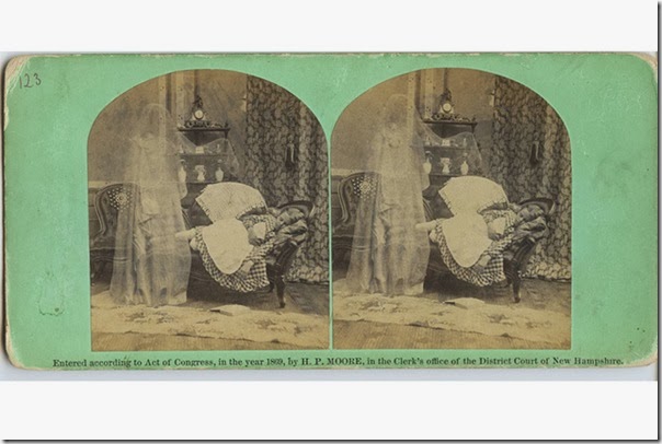 ...такие снимки получили особую популярность в 1860-х годах, но и сегодня еще вызывают интерес у людей. Пионером спиритической фотографии считается гравер Уильям Мамлер из Бостона. В тех самых 1860-х он представил публике фотографии, на которых, помимо живых людей, якобы были запечатлены духи умерших. Сам он утверждал, что это выходит у него совершенно случайно, а затем дело было поставлено на поток — клиенты валом шли к нему, чтобы сфотографироваться со своими скончавшимися родственниками.