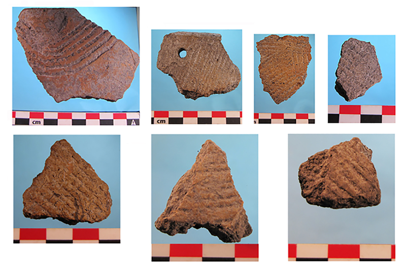 Фрагменты сосудов с гребенчатым орнаментом, найденные на неолитической стоянке Навес у Алебастрового завода. © Любовь Голованова