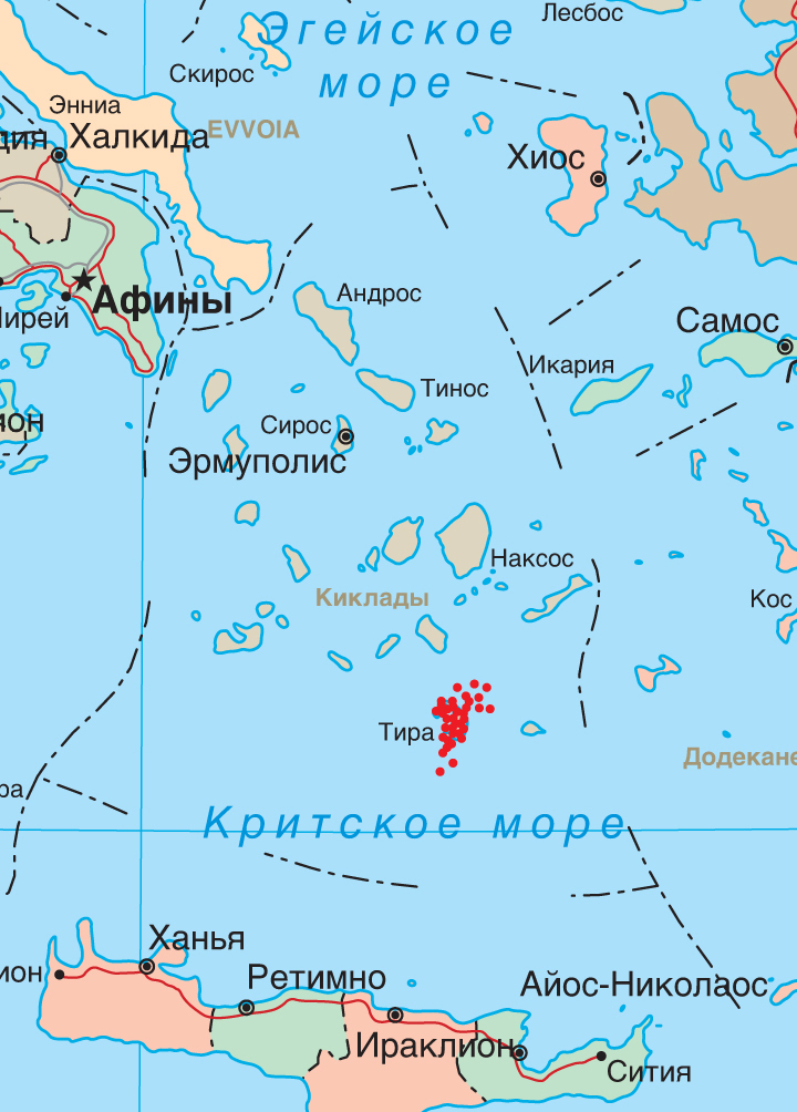 – Обычные землетрясения происходят из-за высвобождения энергии на стыке двух плит. А что происходит сейчас под Санторини?