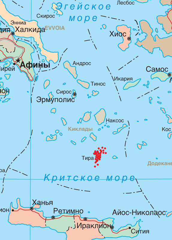 – Где находится эпицентр сейсмоактивности возле Санторини?