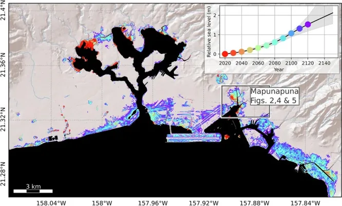 В хоне наибольшего риска находится промышленный район Мапунапуна на юге Оаху, поскольку он был построен на осадочных породах и искусственной насыпи. Ученые опасаются, что оседание района может увеличиться «более чем на 50% к 2050 году, в то же время приближая наводнение на 50 лет».