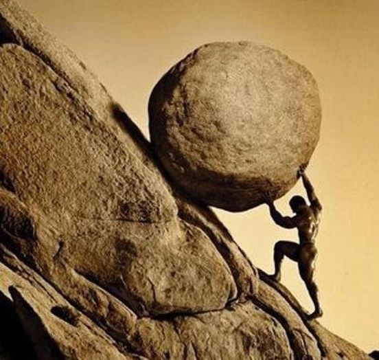 После смерти Сизифа отправили в Тартар с наказанием — толкать валун на вершину горы, который всегда скатывался обратно. Эта история стала символом абсурдной борьбы человека с судьбой.