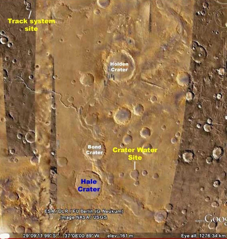 Дорога тянется к кратеру Гейла, а начинаются "ЖД пути" примерно в 900 километрах от него. В том кратере, из которого выходят "рельсы", заметны строения. Вокзал? Поселок?