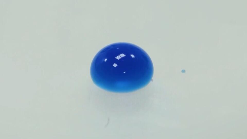 "На полиэтиленовой пленке мы видим, что капля не растекается и принимает форму, близкую к сфере, практически симметричную", – подчеркнула ведущий специалист РЭУ им. Г. В. Плеханова Анастасия Анпилова.