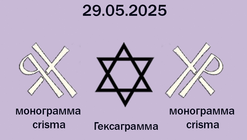 И именно в этот день дано было ПОСЛАНИЕ и ЗНАМЕНИЕ - гексаграмма - справа и слева обрамленная монограммами "Хризма" (левая в зеркальном отражении).