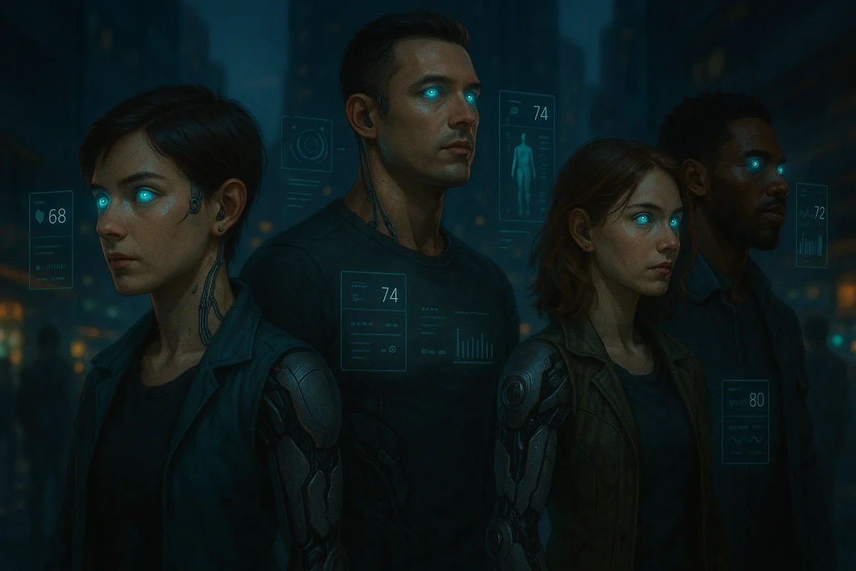 ИИ предсказывает эру киборгов — людей с имплантами мозга, бионическими конечностями и светящимися глазами.