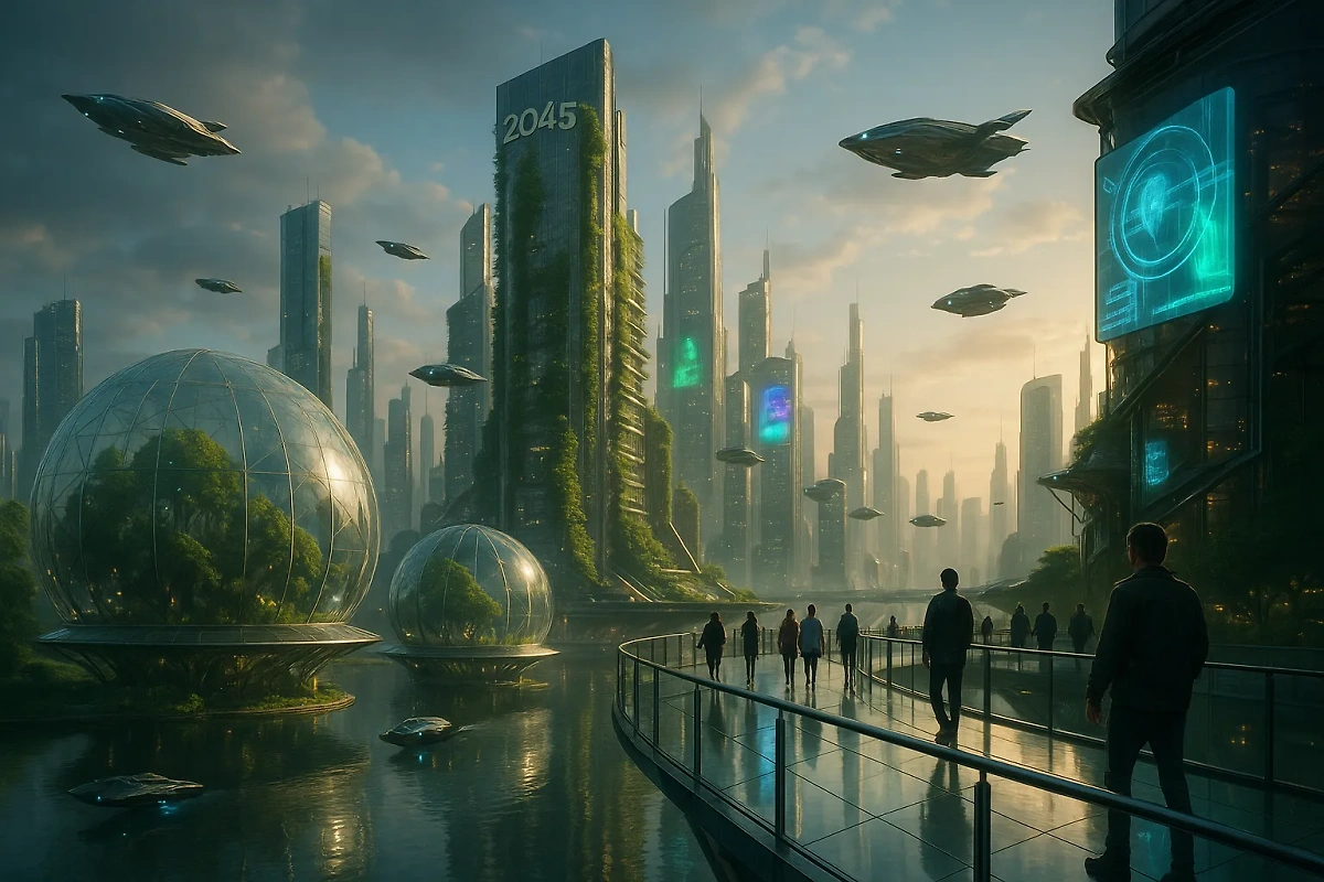 Так ИИ представляет мегаполис 2045 года — города поднимутся в небо, а небоскрёбы превратятся в вертикальные леса.