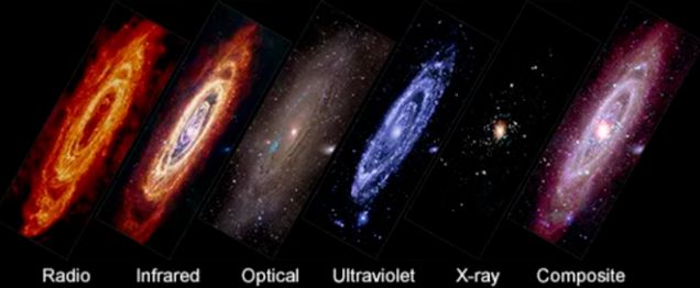 Галактика Андромеды (M31) в различных типах света, которые объединили вместе, что бы получить фото.