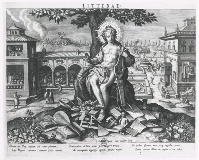 Рядом со статуей Аполлона стоит изображение Атланта, далее следуют статуи Гермеса и Илифии.