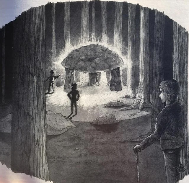 Андерс описал то, что он видел, как некий купол или, возможно, это был большой валун, стоящий на трех столбах (которые также могли быть сделаны из камня). Из-под валуна струился яркий свет, и вокруг он слышал странные звуки, как от какой-то таинственной музыки. Перед каменным образованием он также увидел несколько маленьких человекоподобных существ с выпуклыми глазами и большими заостренными ушами. Андерс остановился в изумлении, и тогда существа заметили его. Один из них держал в руке короткий посох, и он поднял руку и указал им на Андерса.