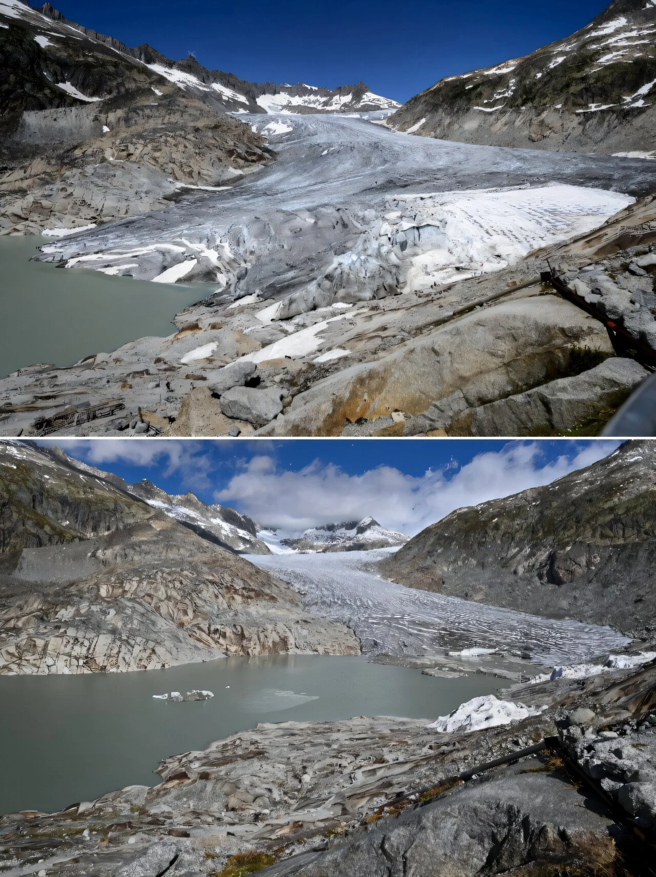По данным мониторинга ледников в Швейцарии (GLAMOS), дальнейшее таяние в период с сегодняшнего дня по октябрь неизбежно приведет к уменьшению абсолютных размеров ледников в Швейцарских Альпах. В этом столетии переломный момент в среднем приходится на середину августа. Резкое ускорение само по себе уже является плохой новостью для 1400 ледников страны, которые тают ошеломляющими темпами. Ледники как бы кричат: «Мы исчезаем! Помогите нам!»