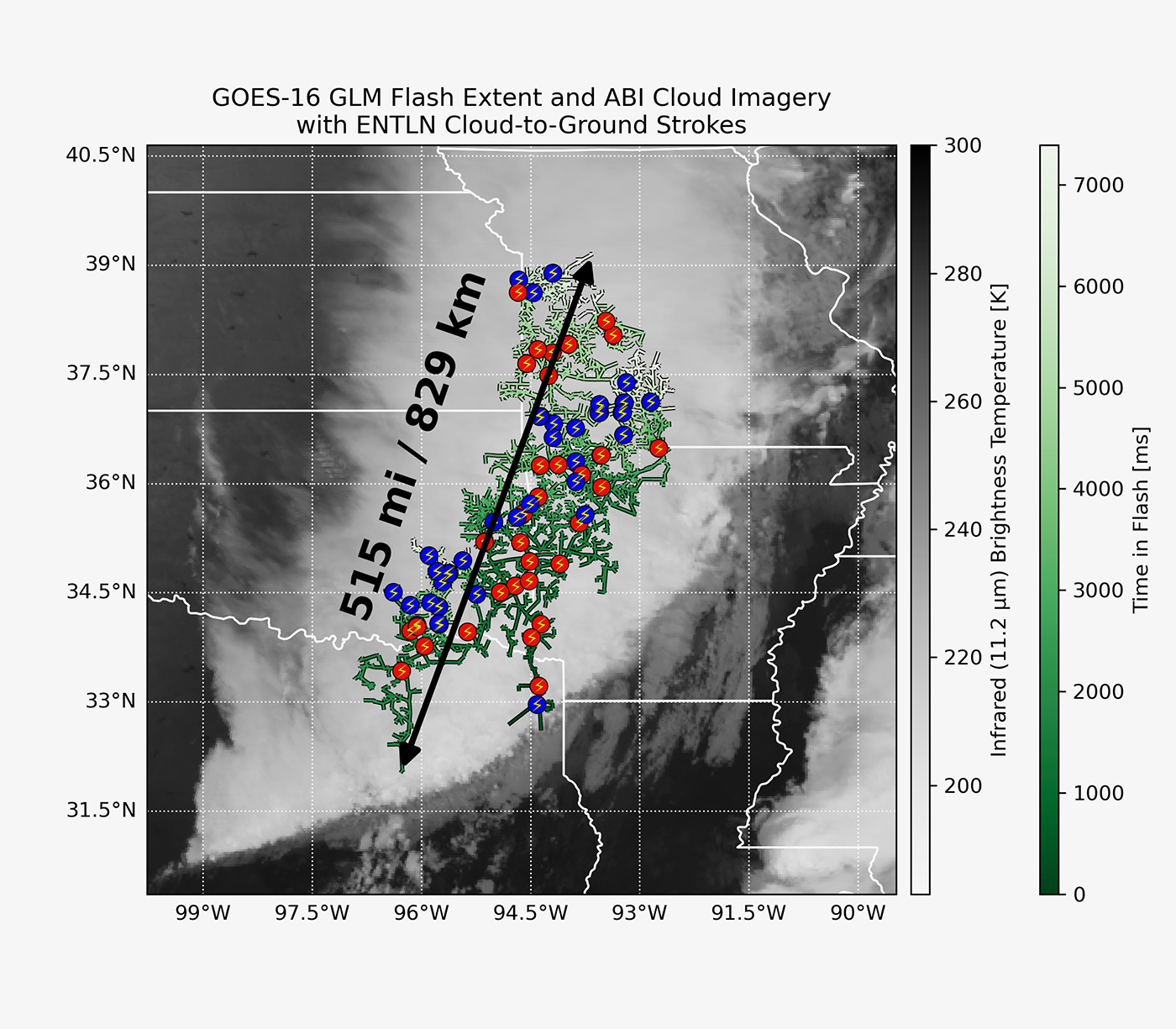 В США зарегистрирована рекордная молния длиной 829 километров