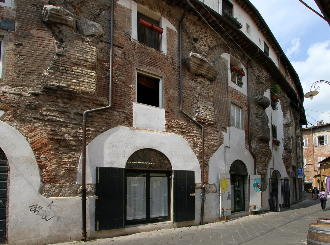 "Спрятанный" амфитеатр: Если присмотреться, в основаниях некоторых зданий видны римские камни с резными надписями.