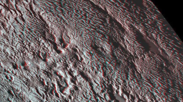 Во время пролета мимо Плутона, аппарат обнаружил глыбы метанового льда высотой около 300 метров — примерно такой же высоты, как Эйфелева башня. Они расположены на расстоянии до 7 километров друг от друга, образуя почти параллельные ряды, образуя геологическую структуру, которую астрономы называют «клиновидный рельеф» вдоль экватора планеты в регионе Тартар Дорса, горном участке к востоку от знаменитой области Томбо, имеющей форму сердца.