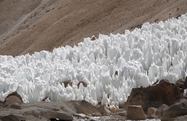 Эти структуры напоминают земные пенитентесы, но более высокие и широко расставленные. Пенитентесы — целые поля снежных и ледяных столбов, встречаются в основном в Андах и в Гималаях. Одни высотой всего несколько сантиметров, другие возвышаются почти на 10 метров. Подобные образования были замечены на спутнике Юпитера Европа и, возможно, на Марсе.