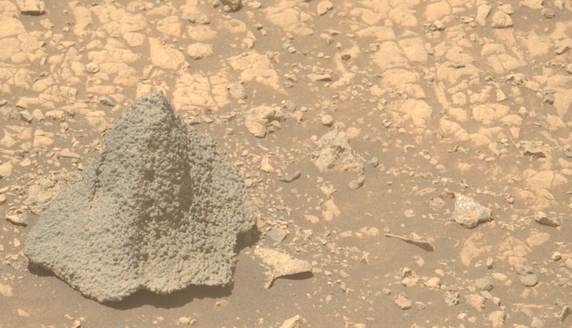 «Этот камень в форме шляпы состоит из сферул. Он отличается не столько формой (которая, на мой взгляд, в целом соответствует пирамидальной форме, которую мы часто видим у выветренных плавающих блоков на поверхности Марса), сколько тем, что он почти полностью состоит из сферул», — рассказал Дэвид Эгл, представитель группы Perseverance в Лаборатории реактивного движения НАСА.