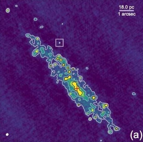 Изображение галактики NGC 4945, полученное с помощью телескопа ALMA. Punctum — это маленькая точка внутри рамки.