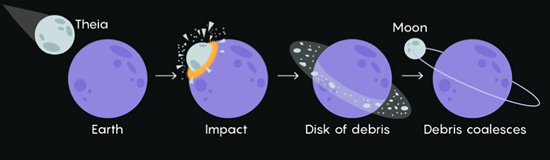 На протяжении десятилетий учёные строили теории о столкновении ранней Земли с протопланетой размером с Марс, названной Тейя. Это космическое столкновение, произошедшее более четырёх миллиардов лет назад, является наиболее общепринятым объяснением формирования Луны из образовавшихся обломков.