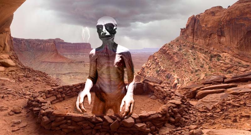 Они рассказывают, что давным-давно в каньон спустился с небес огненный корабль. Из него вышел не человек, а огромная рептилия, могущественная и жестокая. Он назвал себя богом, но индейцы прозвали его «Игроком». Пришелец обладал способностью менять облик, превращаясь в светловолосого голубоглазого мужчину, чтобы обмануть доверие людей.