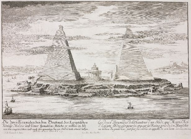 В V веке до нашей эры Геродот путешествовал по Египту, и его поразило всё, что он видел. Но самым невероятным зрелищем стали, по его словам, две пирамиды, возвышавшиеся из вод озера Морис (современное название — озеро Биркет-Карун). Он подробно описал их в своих трудах: каждая вздымалась на высоту около 180 метров (для сравнения, пирамида Хеопса — 139 метров сегодня), и половина их была скрыта под водой. Само озеро, искусственное и невероятно глубокое (до 90 метров), служило им гигантским зеркальным пьедесталом.