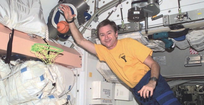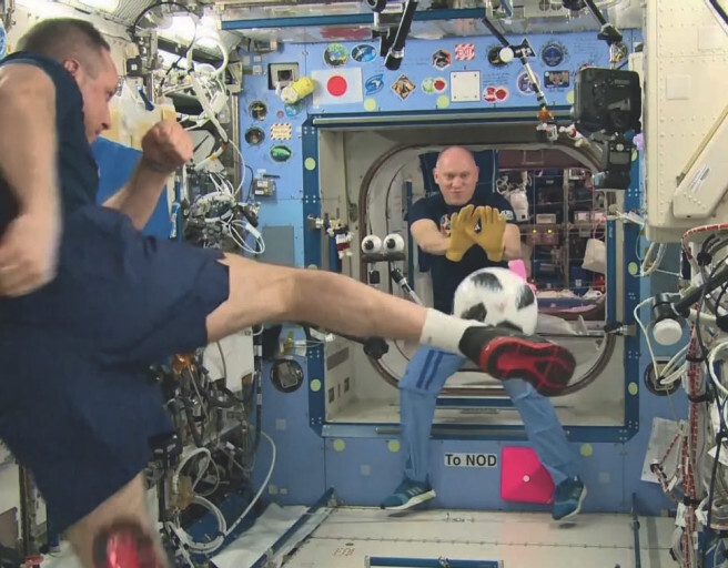Утечки воздуха, разгерметизация, столкновение с космическим мусором — разве эти риски отменяются, если на борту есть баскетбольная корзина? Да, на МКС есть и она. А ещё горы мячей: футбольных, баскетбольных и даже для регби. Экипаж постоянно позирует с ними, лупит по стенам, бьёт ногами, играя в орбитальный футбол.