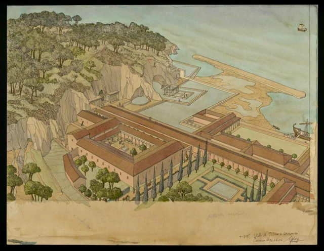 Изначально комплекс был построен в период между 30 и 20 годами до нашей эры, удачно воспользовавшись уникальным ландшафтом. Но свой истинный, имперский размах он приобрёл благодаря Тиберию, преемнику Октавиана Августа. В I веке нашей эры император, известный своим сложным характером и тягой к уединению, кардинально расширил и перестроил виллу, превратив её в своё личное убежище — место, где можно было скрыться от интриг и шума Вечного города.