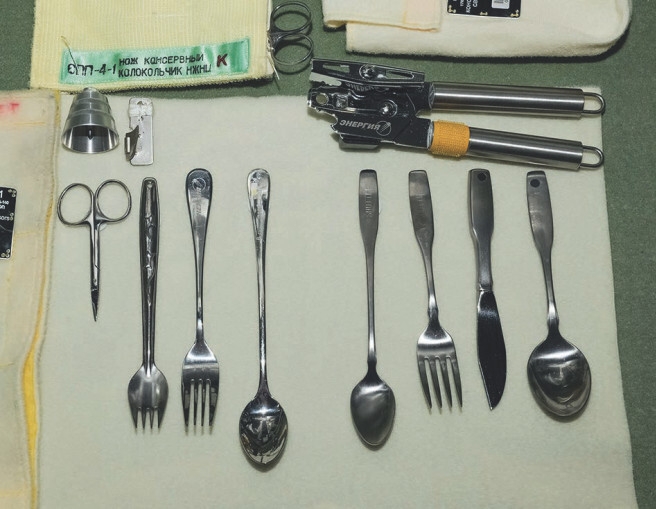Забавно, но консервный нож на МКС идентичен обычному дешёвому китайскому ножу. Такое ощущение, что на нож из Китая просто нанесли символику корпорации «Энергия». Самый амбициозный проект человечества под названием МКС и дешевый китайский консервный ножик.