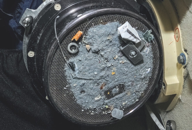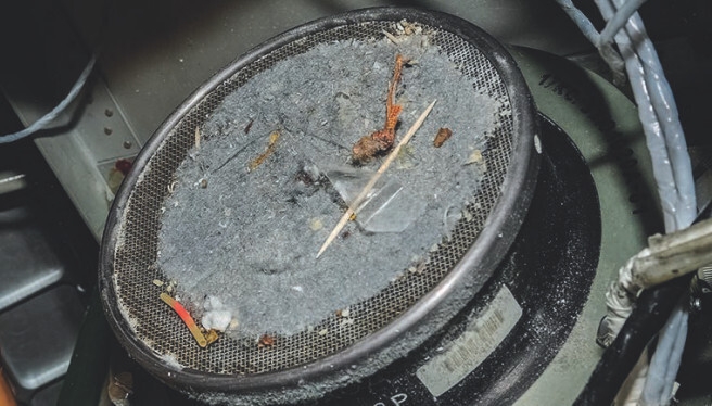 На сетке фильтров нет ни одного волоса. Зато есть зубочистка, стальная шайба, пластиковая трубка, колпачок от какой-то бутылки, фрагменты бумаги и много мелкого войлока, фрагменты шерсти и ниток. Ощущение такое, что реквизиторы прилепили то, что было под рукой. Могу ошибаться, но, кажется, на одной из сеток вентиляции виден фрагмент фильтра сигареты. Хотя я бы даже не удивился этому.