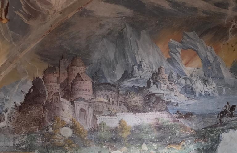 Росписи на стенах этого замка не просто необычные, а скорее являются летописью событий, которые можно назвать глобальной перестройкой мира, того самого Великого слома, когда на смену старому миру пришел новый, который и был заселен людьми.