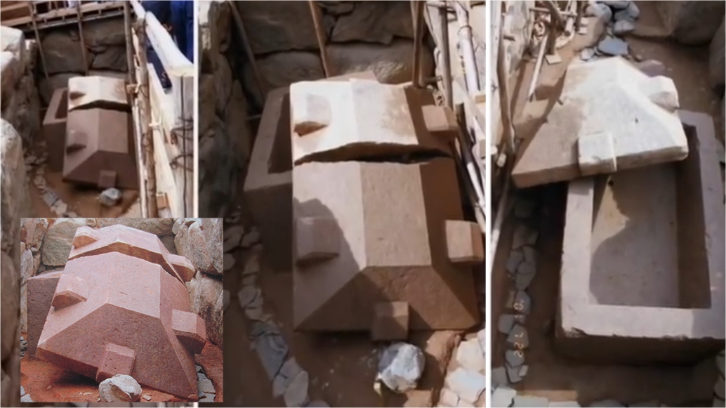 Размеры блока составляют 5,7 x 6,4 x 7,2 м, а вес - около 600 тонн. Как обычно, остается неясным назначение столь странного предмета.