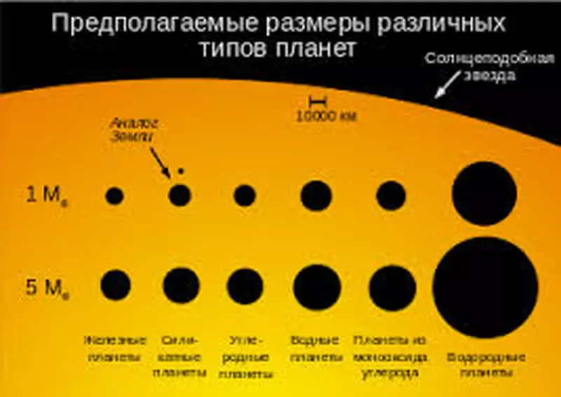 Предполагаемые размеры разных типов планет.Источник: Википедия