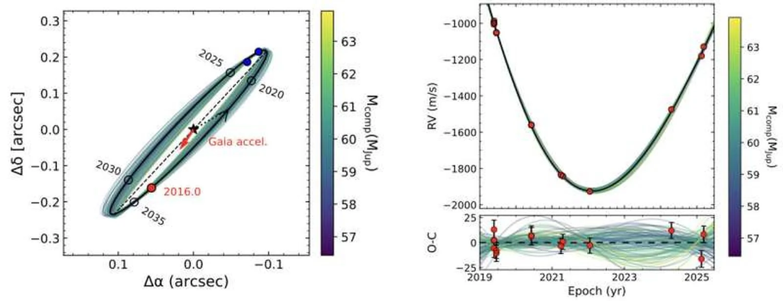 Проанализировав все три набора данных, команда точно определила массу и орбиту спутника. В частности, решающую роль сыграли данные, полученные в течение шести лет в рамках стратегической программы (IRD-SSP) телескопа «Субару». Данные о радиальной скорости сами по себе не позволяют устранить неоднозначность между массой и наклоном орбиты, но добавление прямых изображений и астрометрии Gaia устраняет эту неопределенность.