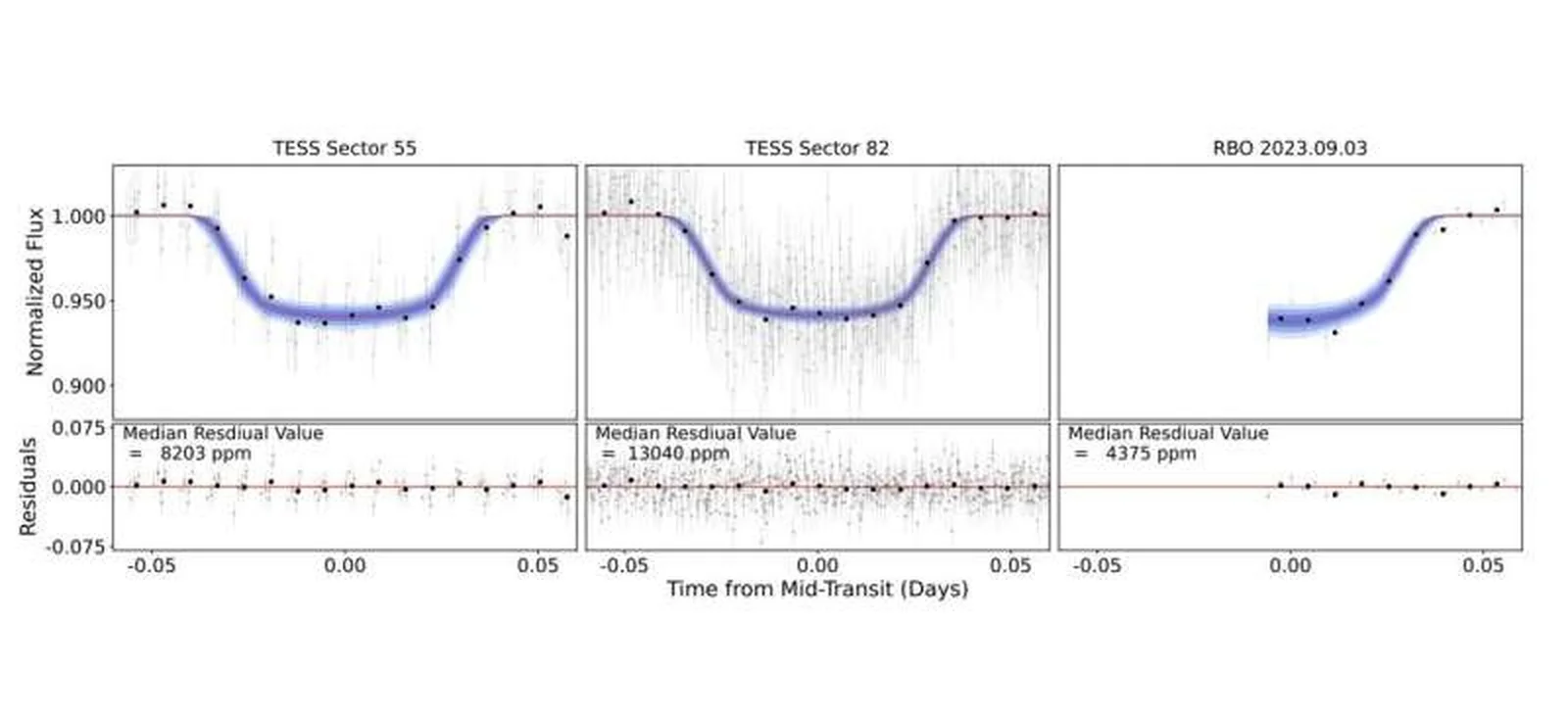 Группа астрономов под руководством Шейна О’Брайена из Калифорнийского университета в Ирвайне сообщает об обнаружении транзитных сигналов на кривых блеска двух M-карликов, а именно TOI-5916 и TOI-6158, каждый из которых примерно в два раза меньше и легче Солнца. Команда О’Брайена подтвердила планетарную природу этих сигналов с помощью наземной фотометрии и данных о лучевых скоростях. Планеты находятся очень близко к звездам-хозяйкам, что исключает их обитаемость.