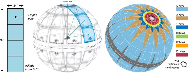 Секторы обзора TESS и время их обзора, от 27 до 351 сутокИсточник: https://commons.wikimedia.org/