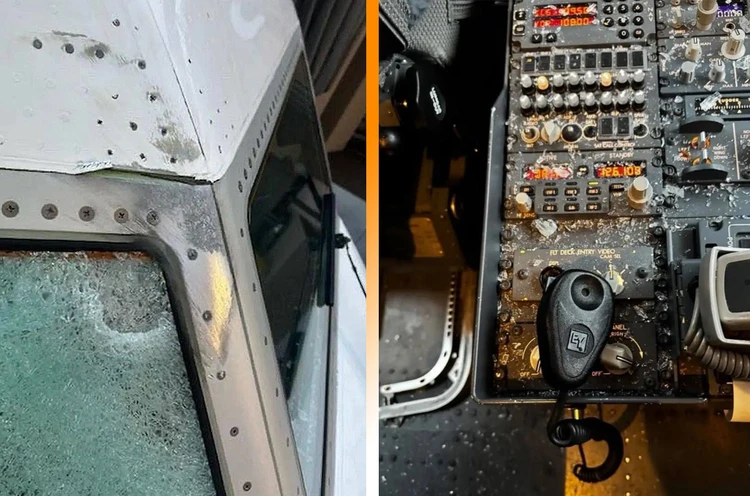 В лобовое стекло самолета авиакомпании United Airlines что-то угодило прямо в полете.