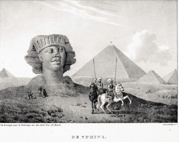 На карте 1720 года, наряду с пирамидами, изображены не один, а два колоссальных монумента. Один из них — знакомый нам Сфинкс. Рядом с ним находится вторая статуя, которую старинные источники описывают как «бюст эфиопской женщины, которой поклонялись древние египтяне». Гравюра 1760 года подтверждает это: оба существа — сфинксы, но один имеет классическую львиную форму с человеческой головой, а второй — голову женщины с явно выраженными негроидными чертами.