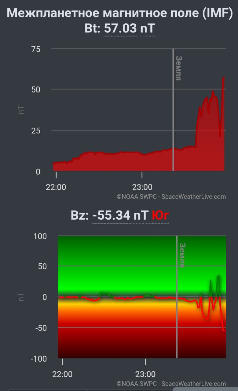 Основной удар ожидается поздним вечером\ночью 12 ноября и продолжится включая 13 ноября, 14 ноября ожитдается постепенное снижение геомагнитной бури (если не произойдет новых вспышек). Первая волна на подходе и уже вызвала спышку полярных сияний, цвет сияний кррасный - акктивно сгорает кислород.