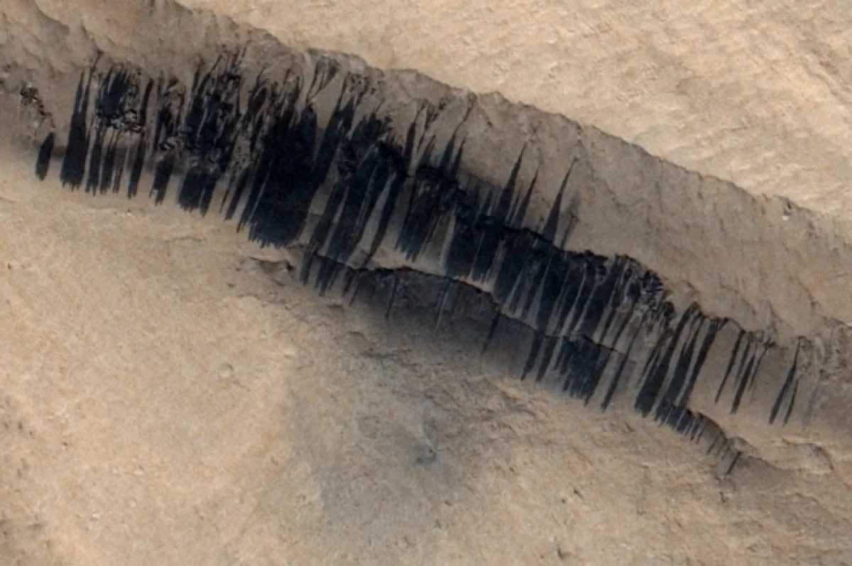Орбитальный аппарат заснял таинственные черные полосы на Марсе