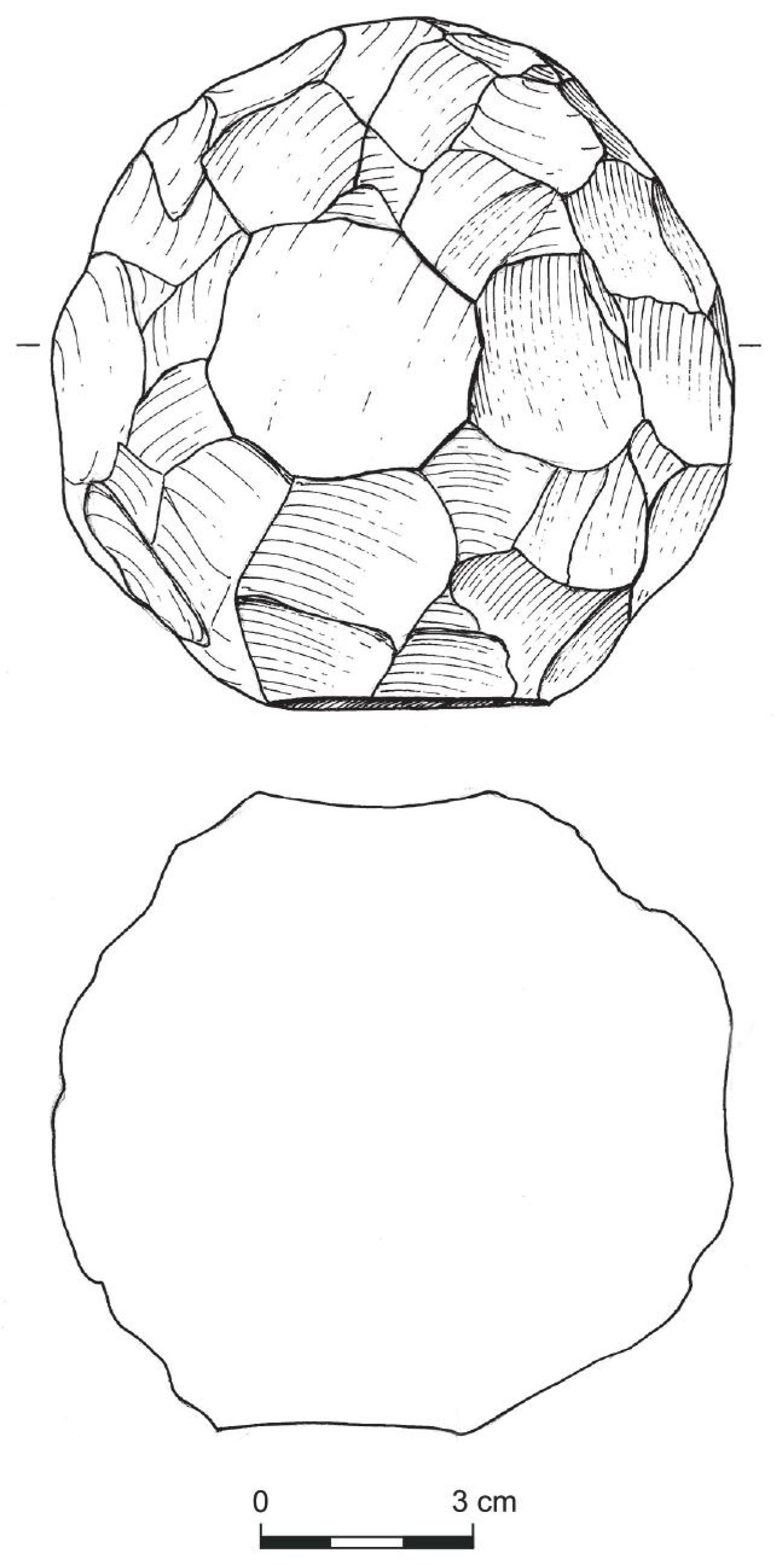 Технологический процесс включал несколько этапов: отбор подходящей заготовки, создание плоской поверхности под правильным углом и последовательное формирование сферической формы через систему многократных сколов. Некоторые экземпляры несут следы повторной обработки, что свидетельствует о длительном жизненном цикле этих орудий.