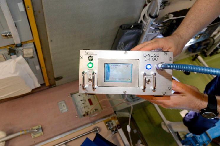 Работа над экспериментом велась в два этапа. На первом прибор "знакомили" в лаборатории с эталонными запахами самых распространенных и опасных обитателей МКС. Таким образом, в его память была заложена база данных "микробных ароматов". На втором этапе "Электронный нос" испытывали на способность распознавать микробы не в чистой культуре, а на реальных образцах материалов.