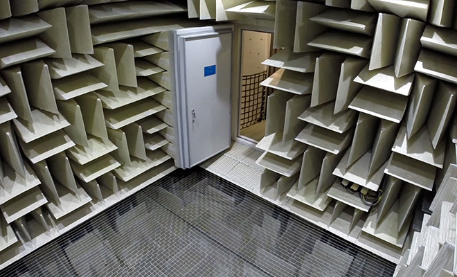 Созданная в здании 87 кампуса Microsoft в Редмонде (штат Вашингтон), эта лаборатория тишины была официально внесена в Книгу рекордов Гиннесса в 2015 году: уровень фонового шума внутри составляет около −20,35 дБ(A) — ниже порога человеческого слуха. Разработка заняла почти два года, а инженеры использовали шесть слоев бетона и стали, виброизолирующую платформу на пружинах и особые клиновидные звукопоглощающие панели, полностью исключающие эхо.