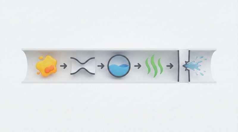 Жирные субстанции, попадая в систему, прилипают к стенкам труб, образуя плотный слой. Этот слой задерживает другие частицы – остатки пищи, волосы, мыльный налет. Со временем этот ком становится благоприятной средой для размножения бактерий. Бактерии выделяют кислоты, которые напрямую атакуют материал трубы, вызывая локальные очаги коррозии.
