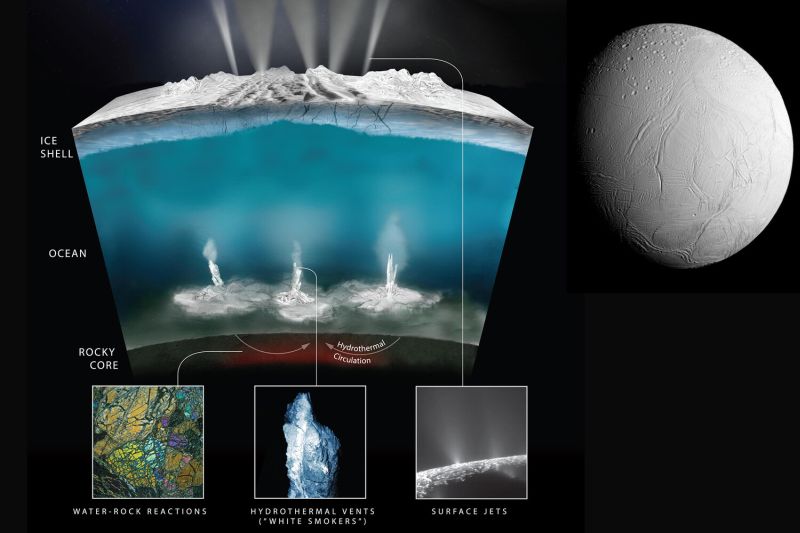 Энцелад давно считается одним из главных кандидатов на внеземную обитаемость. Под его ледяной корой, по мнению астрономов, скрывается океан жидкой воды. На это указывают мощные гейзеры в южной полярной области спутника: струи воды и льда вырываются из трещин поверхности и формируют так называемое E-кольцо Сатурна.