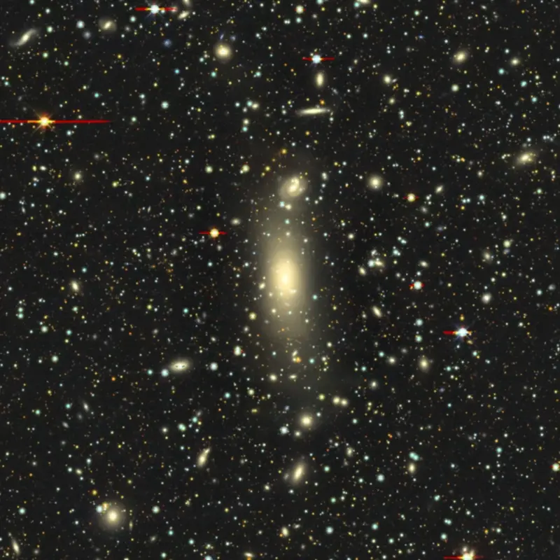Рентгеновское изображение галактического скопления Abell 3571 с яркой галактикой в центре. Ширина изображения — около 5 угловых минут.Источник: https://commons.wikimedia.org/